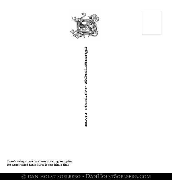 This illustration of Drew is from the book Dwellers of Lurching Swill. The poem that accompanies the illustration in the book is written on the back of the postcard. This 6" x 6" high quality reproduction is perfectly suitable for framing.