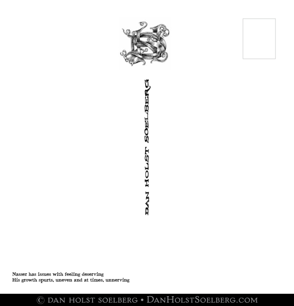 This illustration of Nasser is from the book Dwellers of Lurching Swill. The poem that accompanies the illustration in the book is written on the back of the postcard. This 6" x 6" high quality reproduction is perfectly suitable for framing.