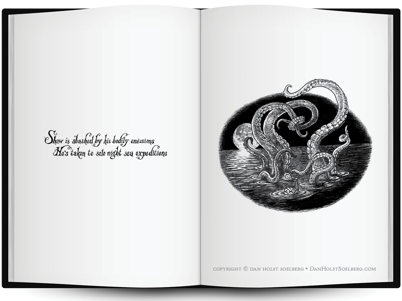 The town of Lurching Swill is populated by folks with peculiarities that rival only residents of West Blankshire (the first Book of Odens Grebal). Dark and whimsical, the children of Lurching Swill are revealed in rhyming couplets. Every word is hand-drawn in ink, to match the meticulous black ink drawings. This is a book for lovers of the macabre with a smirking twist of humour.
