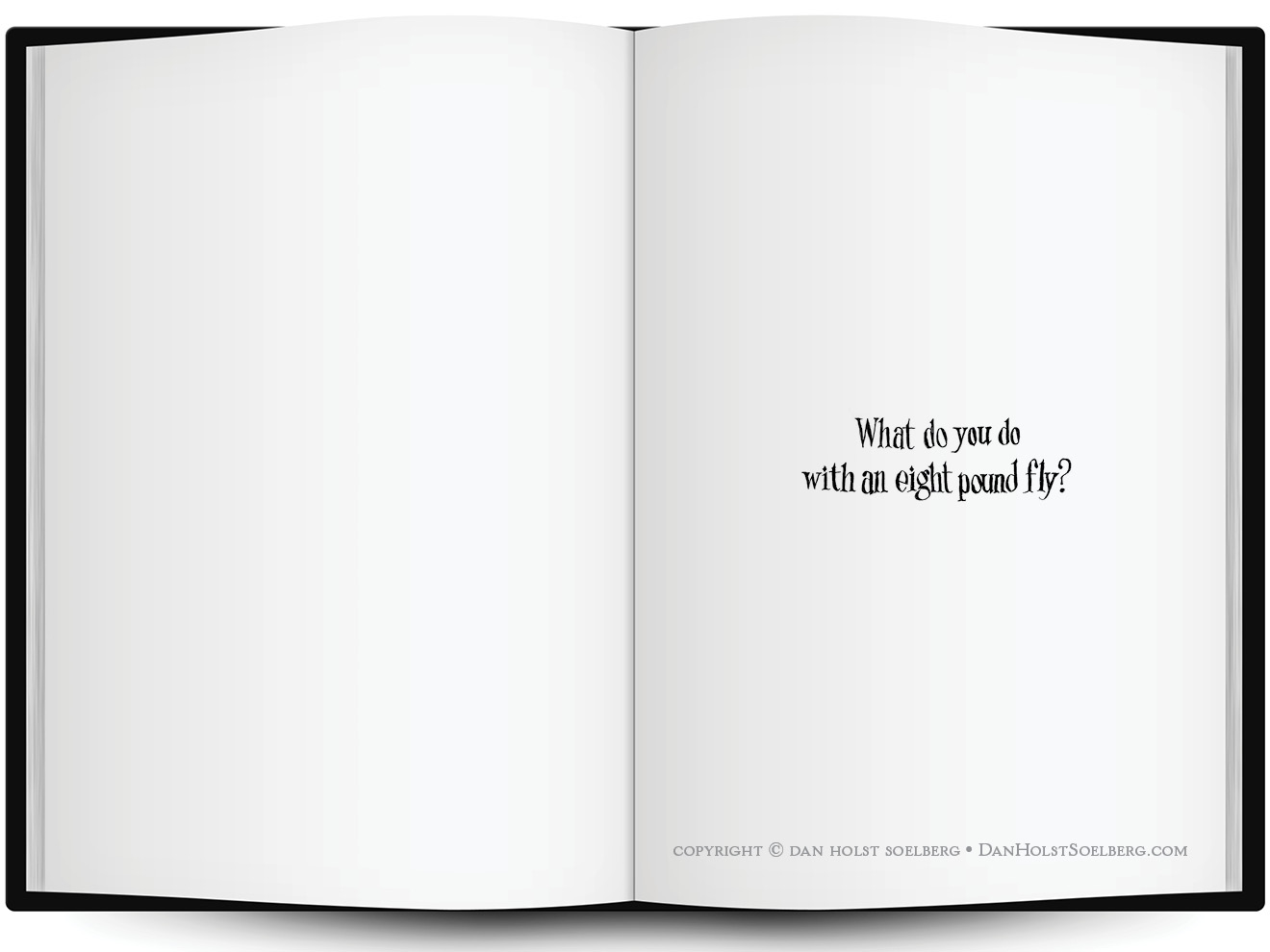The book starts with the question "What do you do with an eight pound fly?", and you get a myriad of options that span from the banal to the adorable to the outright morbid. You may want to sit your fly down for a talk before involving him or her in any of these questionable and, occasionally, unseemly activities.